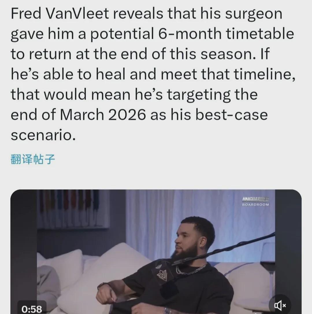 值得一提的是,去年9月份遭遇右膝前十字韧带(ACL)撕裂的范弗利特,美记Stein表示并没有排除他于本赛季复出的可能性,该消息得到了火箭主帅乌度卡的确认。同时范弗利特本人也透露,若恢复顺利且能按期完成康复计划,最佳复出时间将瞄准到今年3月底。
